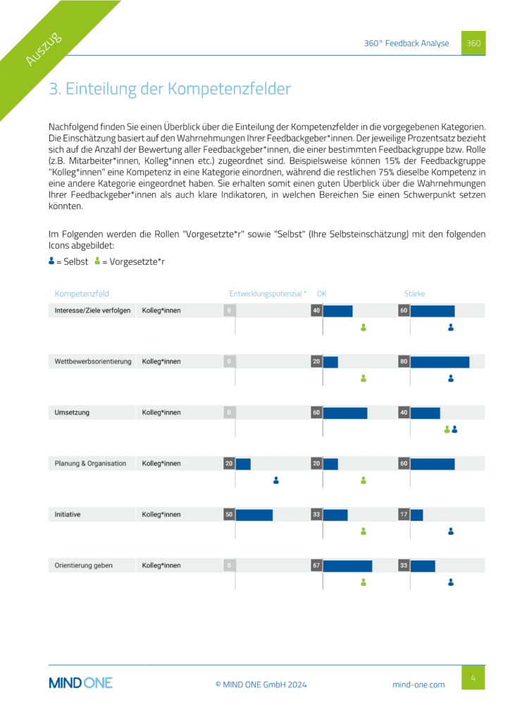 The 360° Feedback reports can be modularly tailored to meet the company’s needs.
